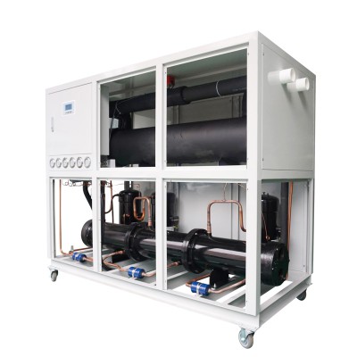 水冷式冷水機核心優勢:能效比高,針對有冷卻水源的場所使用。噪音低等