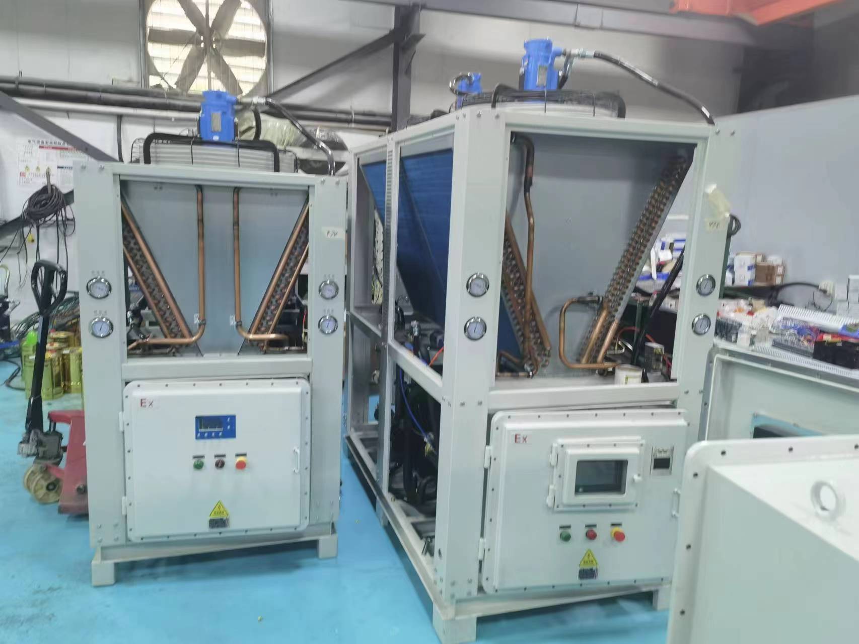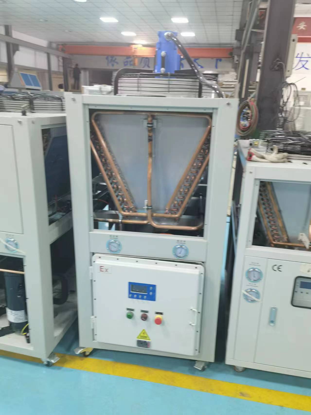 由于冷水機應用的廣泛性和多樣性,有時候經(jīng)常會用于一些有易燃粉塵,氣體或者化工領域。此時冷水機為了安全的需要在電控、電機、風機等地方做防爆處理,不同場合有不同的特殊要求。故我們稱之為防爆冷水機針對。